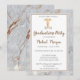 Invitación a graduación de la escuela de enfermería sobre fondo de mármol.