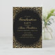 Elegante invitación de fiesta de graduación negra con un marco purpurina dorado. Perfecto para graduación de secundaria o universitaria. Póngase en contacto con nosotros para obtener ayuda sobre la personalización o para solicitar productos de correspondencia o coordinación.