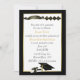 Elegante invitación a la fiesta de graduación, realizada con un fondo blanco y un marco de tono negro y dorado. Gráficos de un cartel en negro y oro, en la parte superior, y un diploma y gorro de mortero, en la parte inferior. Personalice el año y el resto del texto de la invitación para adaptarlo a sus necesidades fiestas.