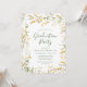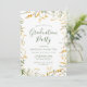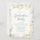 Elegantes invitaciones florales a fiestas de graduación con detalles de tu fiesta de graduación con letras de color verde oscuro enmarcadas por flores acuáticas en tonos amarillo vibrante y dorado con follaje verde exuberante. Las invitaciones amarillas de graduación floral son perfectas tanto para graduados de secundaria como universitarios.
