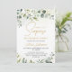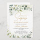 El diseño es elegante y cuenta con un paisaje de color agua con eucalipto. Invitación del Partido de Jubilación Sorpresa para hombres, mujeres. Parte de una colección. Elementos coincidentes disponibles.