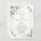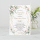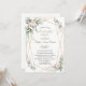Diseño de tarjeta encantador que presenta flores delicadas de color rosa blush pintadas a la acuarela, hojas verdes aireadas y doradas, un marco dorado falso, divisor floral, sobre un fondo blanco. Utilice la herramienta Personalizar para agregar su información. Para artículos coincidentes, visite mi colección floral verde dorada.