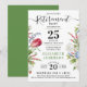 Esta elegante invitación a la fiesta de retiro tiene un diseño elegante con un tema floral con tulipán rojo magenta, hojas verdes, lavanda azul y blanco botánico | flores silvestres. Esta bonita muestra de jardín está acondicionada con un sencillo fondo blanco. Casi se puede sentir el aire fresco de un prado primaveral. La espalda es un verde delicado. Todos los textos son personalizable, puedes personalizarlos y hacer tu propia invitación de moda a un fiesta de jubilación. También disponible en variaciones de color y en formato digital, ¡pida el suyo ahora!