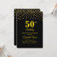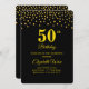 Elegante invitación de fiesta de cumpleaños número 50 de oro. Oro metálico como cabecera en negro. Texto listo para ser personalizado.
