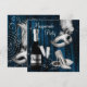 Elegante máscara de plumas de champán plateado y blanco con invitación a una fiesta de disfraces de fondo negro y azul. Esta hermosa invitación a una fiesta de disfraces de color negro, blanco y azul real de medianoche funciona bien para una fiesta de cumpleaños de una mujer con máscara, Carnaval o Mardi Gras con máscara, o cualquier otra fiesta de disfraces con tema negro y blanco y se personaliza fácilmente para su evento simplemente eligiendo el botón "¡Personalízalo!" para comenzar a agregar los detalles de su evento, estilo de fuente, tamaño y color de fuente y redacción. Tenga en cuenta que todos los diseños de tarjetas e invitaciones que encontrará en Zazzle son gráficos impresos sin joyas reales, lazos, partes o piezas en relieve, estampados en relieve o agregados.