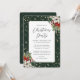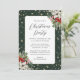 Esta elegante invitación a una fiesta de Navidades verdes y dorados con confeti de oro, poinsettia blanca, sana de bayas rojas y otros botánicos de invierno es perfecta para Navidades fiestas, veladas de vacaciones, eventos corporativos, fiestas de cócteles de vacaciones y más. Personalice fácilmente esta invitación con los detalles de su fiesta.