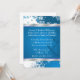 Hermosa invitación para fiestas de vacaciones, con ilustraciones gráficas de fondo de color gris azul y blanco, con copos de nieve. Las cintas de tono plateado bordean la parte superior e inferior del área de texto azul. El texto en blanco es totalmente personalizable para satisfacer sus necesidades de fiesta.