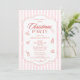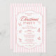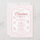 Elegante Fiesta de Navidades corporativos Invitaciones de feriado de la compañía presentan elementos de Navidades rojos simples y extravagantes sobre un fondo rayado rosa y blanco con el texto "Fiesta Navidades" en elegante tipografía de escritura de caligrafía roja. Elegante, moderno y moda para su fiesta de vacaciones corporativa. Creado por Evco Studio www.zazzle.com/store/evcostudio