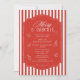 Elegante Fiesta de Navidades corporativos con mora y brillante invitaciones para fiestas de vacaciones de la empresa presenta elementos de Navidades blancos simples y extravagantes sobre un fondo de rayas rojas y blancas con el texto "Merry & Bright" en elegante tipografía de escritura caligrafía roja. Elegante, moderno y moda para su fiesta de vacaciones corporativa. Creado por Evco Studio www.zazzle.com/store/evcostudio