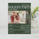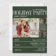 Organiza tu celebración de vacaciones con estilo con esta invitación de fiesta de Navidades diseñada en una divertida portada de revista y tema de estilo periodístico. El fondo verde oscuro añade un toque de elegancia festiva, mientras que el diseño destaca una foto personalizado, fecha del evento, detalles de RSVP y ubicación fiesta en una tipografía audaz inspirada en la editorial. Perfecto para reuniones de vacaciones, fiestas de oficina o celebraciones familiares, esta invitación marca la pauta para una noche memorable llena de alegría y alegría. Una manera única y moderna de invitar a amigos y seres queridos a sus festividades de Navidades.