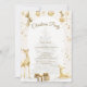 Elegante Fiesta de Navidades dorados y blancos con elementos festivos como un árbol de Navidad, diamantes brillantes, copos de nieve y renos. Perfecto para las vacaciones. Esta elegante invitación es fácil de personalizar con los detalles de su evento, personalizar con sus nombres o si prefiere con el nombre de su familia.