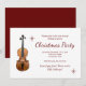 Invitación del Partido de los Navidades Musicales, con un diseño de violín y guión en un fondo blanco. Con letras de tipografía de personalizable rojo, puede agregar su propia información. La parte posterior tiene un color rojo coincidente como acento. Una forma elegante de planificar una fiesta tradicional con un toque de música clásica.