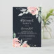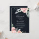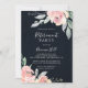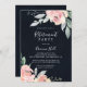Esta elegante invitación a una fiesta de retiro floral de color rosa es perfecta para una moderna celebración de retiro. El diseño presenta rosas de color rosa a mano y peonías con hojas verdes y grises de fondo azul oscuro, inspirando la belleza natural.