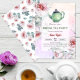 © Socialite Designs & LICENCORS. Elegante invitación a la fiesta de té con tetera y flores. El diseño tiene una bonita tetera, un marco rosa y un fondo acuático. Si desea otros productos con este diseño, por favor contacte con Socialite Designs.