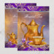 Hermosa invitación para una fiesta de té nupcial en tonos púrpura y dorado que presenta un elegante fondo de acuarela púrpura y dorado con una elegante tetera y taza de té de porcelana dorada y flores de orquídea púrpura y dorada. Esta hermosa invitación para una fiesta de té en dorado y púrpura funciona bien para una invitación para una fiesta de té por la tarde, una invitación para una fiesta de té nupcial o cualquier otra fiesta o evento especial y se personaliza fácilmente simplemente eligiendo el botón "Personalízalo" para comenzar a agregar los detalles de su evento, estilo de fuente, tamaño y color de la fuente y redacción. Tenga en cuenta que todos los diseños de tarjetas e invitaciones que encontrará en Zazzle son gráficos impresos sin joyas reales, lazos, partes o piezas en relieve, estampadas o agregadas.