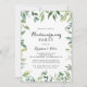Esta elegante invitación a una fiesta de bienvenida tropical verde es perfecta para una simple celebración de una casa nueva. Este diseño hecho a mano presenta una acuarela de hermosas hojas verdes.