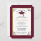 Elegante colegio de tapón de color burdeos y dorado o invitación de graduación universitaria e invitación de fiesta que se subestima con un filtro de aspecto envejecido aplicado. Simplemente personaliza con tus detalles de celebración. Diseño por diseños de Holiday Hearts (derechos reservados).