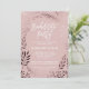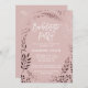 Esta elegante tarjeta de invitación a una soltera rosa y dorada subió es perfecta para un evento elegante. El diseño presenta un impresionante marco falso rosa de Relieve metalizado dorado sobre un fondo rosa rubor y se combina con un llamativo tipo de letra cursiva. Nota: Este diseño no tiene Relieve metalizado de oro rosa real. Es un gráfico de alta calidad hecho para que parezca oro rosa sucio.