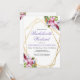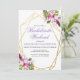 Flores tropicales de acuarela rosadas y púrpuras suaves dentro de un doble marco geométrico dorado presentan florituras botánicas y festivas. Personalice esta invitación de fin de semana de despedida de soltera con sus propios colores y fuentes o mantenga esta tipografía popular tal como está para su conveniencia. Mezcle y combine con otros artículos de esta hermosa colección de bodas.
