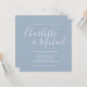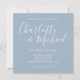 Con nombres de estilo característico, esta elegante invitación de boda azul polvoriento se puede personalizar con su información en letra elegante. Diseñado por Thisisnotme©