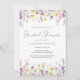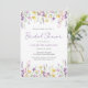 Una elegante y caprichosa invitación a la ducha de novia con "Bridal Shower" exhibida en un guion violeta de moda y acuarelas inspiradas en boho de alegres flores silvestres moradas, rosas y amarillas. Personalice el nombre de la novia y los detalles de la ducha con letras simples de color gris y violeta.