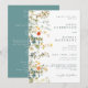 Esta colección cuenta con un borde de flores naturales de color agua elegantes y vegetación en tonos verdes, verde azulados, naranjas y amarillos.