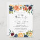 Esta elegante invitación de aniversario de bodas de 50 años es perfecta para un evento moderno. El diseño presenta ramos dibujados a mano de flores rosadas, amarillas, borgoña, rojas, índigo y follaje verde, inspirando belleza natural. Cambie el número para celebrar cualquier aniversario.