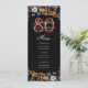 Invitación Elegante Floral 80th Birthday Party Menú Negro