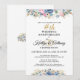 Elegante invitación de celebración de aniversario de boda con bouquets florales de acuarela en azul marino, dorado, rosa y blanco con texto negro y dorado, tipografía de caligrafía y anillos de boda adecuados para cualquier aniversario. ASISTENCIA: Para ayuda con la modificación del diseño o personalización, transferir el diseño a otro producto o si desea artículos coordinados, contacte al diseñador ANTES DE REALIZAR EL PEDIDO a través de la pestaña de MENSAJE de Zazzle Chat o envíe un correo electrónico a makeitaboutyoustore@gmail.com.