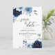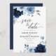 Boda con acuarela floral salva la tarjeta de fecha. Elegante floral salva la tarjeta de fecha con hermosas flores de acuarela pintadas a mano en azul claro y marina con vegetación y elegante guión caligráfico. La marina moderna y la florida boda floral azul claro salvan la tarjeta de fecha con fondo azul marino oscuro en la parte trasera de la invitación. Puede personalizar la redacción, el estilo de letra, el color y el tamaño delante y detrás de la tarjeta. Por favor, no dude en ponerse en contacto conmigo para encontrar artículos que coincidan.