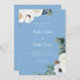 Presentamos nuestra exquisita y encantadora invitación a la boda, perfecta para parejas que quieran añadir un toque de serenidad y gracia a su papelería boda. Esta invitación tiene un ambiente tranquilo y elegante de color azul, con impresionantes ramos florales blancos en las esquinas superior izquierda e inferior derecha, adornados con vegetación, pinecones y agujas de pino para un toque de encanto natural. El texto de la invitación se imprime en un color blanco nítido, añadiendo un sentido de pureza y claridad al diseño general. Los nombres de las parejas se imprimen en una fuente de escritura elegante y tradicional, creando un sentido de sofisticación y glamour. Esta invitación es perfecta para las parejas que quieren transmitir un sentido de tranquilidad y romance en su celebración boda mientras mantienen las cosas elegantes y atemporales. Es lo suficientemente versátil para trabajar con una variedad de temas y estilos bodas, desde la playa hasta el mar. Además, los materiales de alta calidad y la impresión aseguran que sus huéspedes se quedarán impresionados desde el momento en que reciban la invitación por correo. En general, nuestra elegante invitación a la boda en azul con ramos florales blancos es una elección impresionante y memorable que marcará el tono para un hermoso y romántico día de la boda, lleno de serena belleza y gracia.
