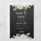 Celebra tu amor con estilo con esta elegante floral blanca y negra. Guarda la invitación a la boda Date. Con un elegante fondo negro adornado con suaves rosas en blanco y crema, exuberante vegetación y tipografía moderna, este diseño irradia sofisticación y romanticismo intemporal. Perfecto para bodas de corbata negra, formales o minimalistas, esta invitación combina los tipos de letra serif clásicos con un guión elegante para una moda y un aspecto moderno. Personalizable completo con sus nombres, fecha de boda, lugar y mensaje personal. ✨ Características: Elegante fondo negro con acentos de ramo floral en blanco y crema Mezcla elegante de fuentes de escritura serif y manuscritas Texto totalmente editable para nombres, fecha, lugar y detalles Perfecto para bodas formales, minimalistas, de corbata negra o monocromados Coordenadas con RSVP, detalles y tarjetas de agradecimiento 💌 Hacer su gran día inolvidable con una papelería boda coordinada en este elegante tema floral.