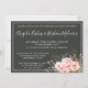 Rama de rosas rosadas románticas y sin tiempo con acentos de coral sobre un dramático fondo de carbón - tres chic! Este hermoso diseño de boda muestra elementos florales y botánicos de moda con un toque fresco y moderno.