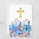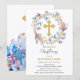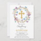 © 2023 Socialite Designs & LICENCORS. Hermosa invitación a bautizar o bautizar con cruz de oro, oro y marco floral. Una invitación maravillosa para invitar a familiares y amigos a asistir al evento y reunirse después.
