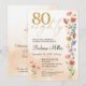 Elegante Florencia Dorada 80 cumpleaños - Invitación de 80 años. Celebra 80 maravillosos años con este elegante diseño de oro y floral de cumpleaños número 80. Con sus flores de color agua suaves y su escritura moderna en un cálido fondo beige, esta invitación combina el encanto atemporal con un aspecto fresco. La parte trasera incluye un mensaje sincero y una coordinación de los detalles florales. Ideal para fiestas de cumpleaños, celebraciones de jardín o reuniones formales. ¡Disfrútalo!