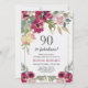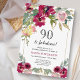 Invitación Elegante floral de oro rosa borgoñona 90 cumpleaño