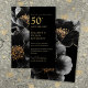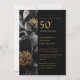 Invitación Elegante Floral Negro y Dorado 50 Aniversario