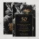 Invitación Elegante Floral Negro y Dorado 50 Aniversario