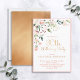 Invitación a la fiesta de cumpleaños número 30 de una mujer moderna y elegante, con un hermoso motivo floral color agua rosa en la esquina superior, con "Fiesta de cumpleaños número 30" y la parte trasera de la tarjeta en Relieve metalizado de oro falso mate, y el nombre en texto de color oro a juego. Bordeado de rosa. Copyright Elegant Invita, todos los derechos reservados.