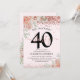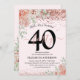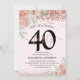 Invitación Elegante floral rosa y Purpurina 40 Fiesta de cump