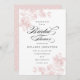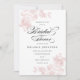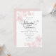 Esta invitación a la ducha de novia presenta florales botánicos vintage de color rosa rubor que enmarcan el elegante tipo de caligrafía en las esquinas opuestas de la parte delantera del diseño.