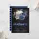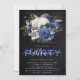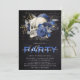 Disfrute de la atmósfera de su velada con esta elegante invitación a la fiesta de halloween para adultos, con un fondo rústico de pizarra, cráneo vintage, flores de color azul y follaje botánico de oro falso. Todo el texto es totalmente personalizable usando la plantilla proporcionada, lo que facilita la personalización de su evento único. Perfecto para los que buscan un ambiente refinado y espeluznante. Haga inolvidable su fiesta con este impresionante diseño.