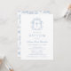 Celebre el bautizo de su hijo con esta elegante invitación de bautizo de cruz floral vintage azul que presenta una cruz enmarcada por una cresta botánica ornamentada para un aspecto clásico y tradicional. El diseño de suave azul crea una presentación clásica y compuesta, combinada con tipografía refinada y escritura fluida para el nombre del niño. Ideal para una ceremonia formal de iglesia, esta invitación de bautizo para niño ofrece un estilo significativo y centrado en la fe con detalles inspirados en la vintage. La parte posterior presenta un patrón floral de Chinoiserie coordinado con flores intrincadas, mariposas y abejas en azul a juego para un acabado cohesivo y pulido.