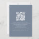 Elegante Florals QR Código Dusty Boda Azul. Disponible digitalmente e impreso. El Boda de está en un script de estilo de escritura a mano establecido. Personaliza fácilmente el resto del texto a tus propios detalles. Con un azul polvoriento oscuro en la parte posterior. Añada su código QR a su sitio web boda en la parte posterior, lo que hace que sea una opción conveniente para sus invitados a RSVP y vea todos los detalles sin necesidad de tarjetas de detalles y RSVP separadas. Su código QR se generará automáticamente para actualizar el código de ejemplo en el diseño, cuando simplemente cambie la dirección URL de ejemplo de la plantilla con la dirección URL de su sitio web boda.
