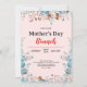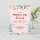 Elegante Primavera Azul Flores salvajes y Rosas Moda Invitación de brunch Día de la Madre. Hermosa celebración con madre y flores. Personalice esta plantilla con su información. Fondo rosa claro en la parte delantera y blanco con flores en la parte posterior. El color es el personalizable.
