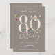 Flores Silvestres Elegante Fiesta de Nacimiento Floral 80 Invitación. Celebre la belleza de la vida con nuestro elegante diseño de cumpleaños con fascinantes flores silvestres. Admire el encanto de la naturaleza con delicados elementos florales que le dan un toque de sofisticación a su celebración. Este diseño capta la esencia de la alegría y la elegancia, haciéndolo perfecto para cualquier ocasión de cumpleaños. Que el encanto eterno de las flores silvestres marque el tono para un acontecimiento memorable y elegante.