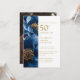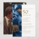 Invitación Elegante foto azul dorada floral 50 aniversario