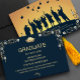 Elegante invitación de foto azul marino y floral dorado, personalice el texto de graduación azul marino y dorado agregando el nombre del graduado y los detalles.