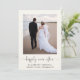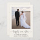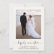 Elegante y moda de color crema claro o invitación boda más pequeña y posterior a la boda o invitación a la fiesta. La parte frontal muestra su foto, "felizmente siempre después", escrita en un guión elegante con guiones y sus nombres, fecha de boda y ubicación. Al revés, personaliza tu invitación boda, agrega una recepción o una invitación a la fiesta, ingresa la dirección del sitio web de tu boda para crear un código QR para que los invitados escaneen RSVP en línea y firmen tus nombres casados en un guión parecido a la firma.