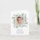Esta elegante tarjeta conmemorativa de agradecimiento incluye hermosos ilustraciones de color verde sobre un fondo blanco clásico, una foto cuadrada única y una tipografía simple y elegante. Por dentro, hay espacio para escribir un mensaje personal, poema, escritura, o invitación a una celebración de la vida, etc. También puede eliminar todo el texto que hay en el interior (para mensajes manuscritos) y/o añadir otra foto si lo desea, sólo haciendo clic en "editar con herramienta de diseño".